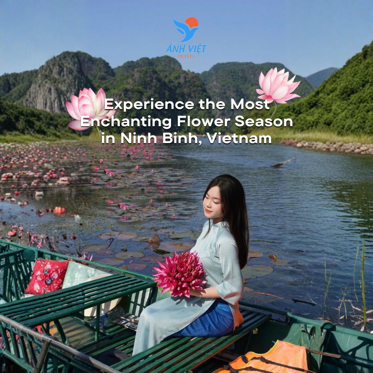 Trang An bamboo boat — glide through limestone caves and mirror-like waterways in Vietnam’s UNESCO mixed heritage landscape.